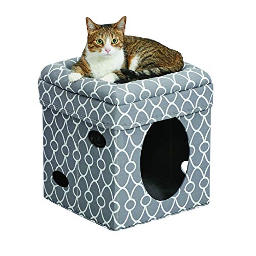 Cat Cube Cozy Cat House / Cat Condo in Fashionable Gray Geo Print 15.5L x 15.5W x 16.5H Inches
