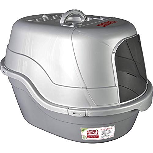 Nature's Miracle P-96952 Hooded Flip Top Litter Box, Oval, With Odor Control, Silver/Grey