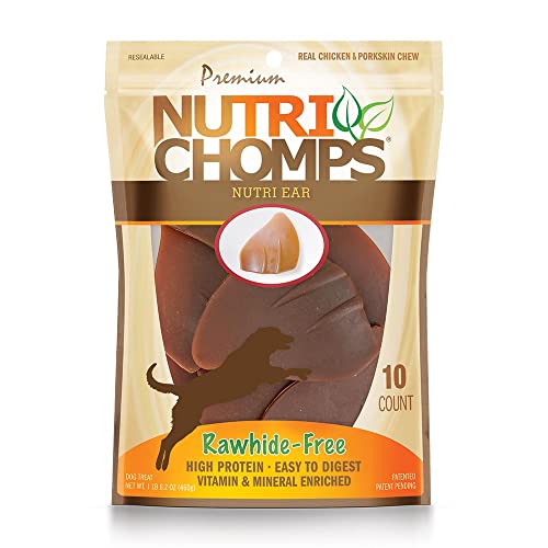NutriChomps Dog Chews, Ear-Shaped, Easy to Digest, Rawhide-Free Dog Treats, 10 Count, Real Chicken flavor